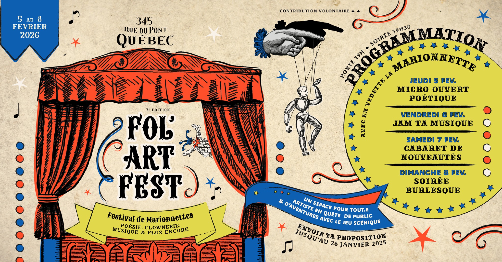Les marionnettes sont à l’honneur pour une troisième année! Ce festival hivernal vous invite à découvrir cet art traditionnel avec une touche contemporaine. Quand les marionnettes se mêlent au clown, musicien, poète, danseur, jongleur, sculpteur … c’est la célébration des arts en folie!