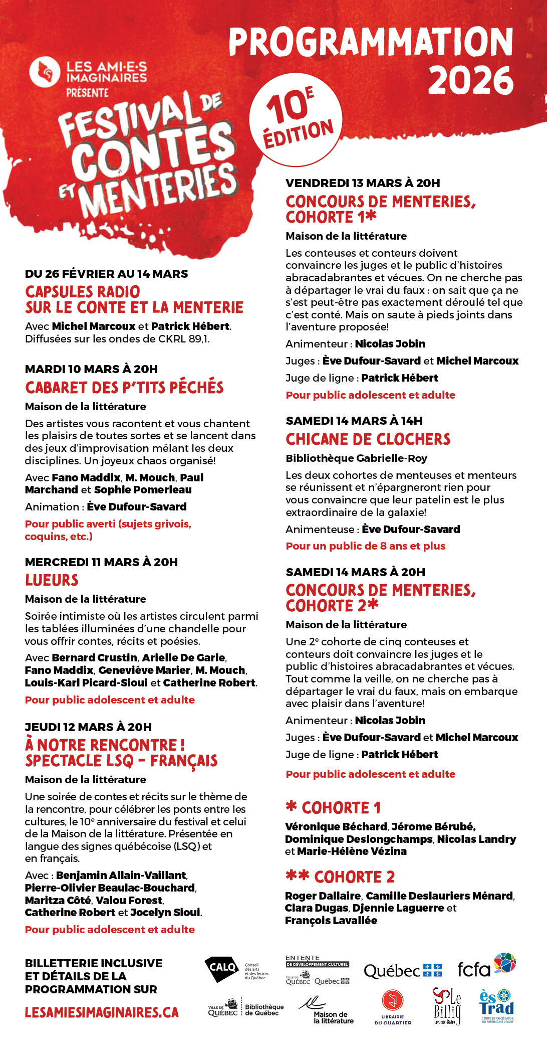 Samedi le 7, Lucie Belleau (une de nos membres) fera partie de la programmation.
